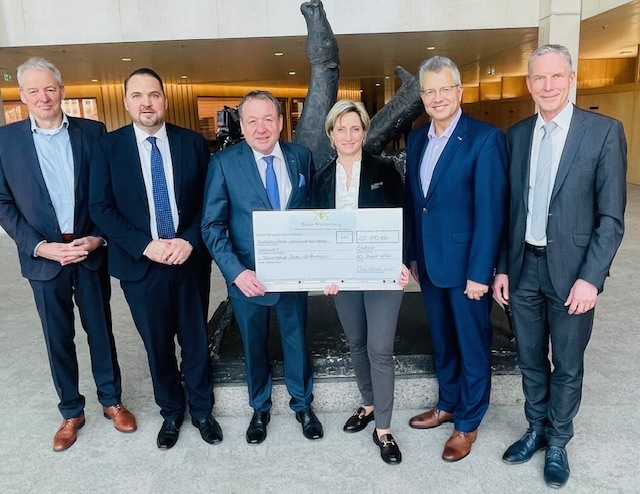 Es gibt sie noch: die guten Nachrichten. Die Bauwirtschaft Baden-Württemberg (BBW) wird beim Neubau ihres Bildungszentrums in Geradstetten unterstützt. Wirtschaftsministerin Dr. Nicole Hoffmeister-Kraut übergab symbolisch einen Scheck. Das Land fördert das Bauvorhaben mit rund 21 Millionen Euro.